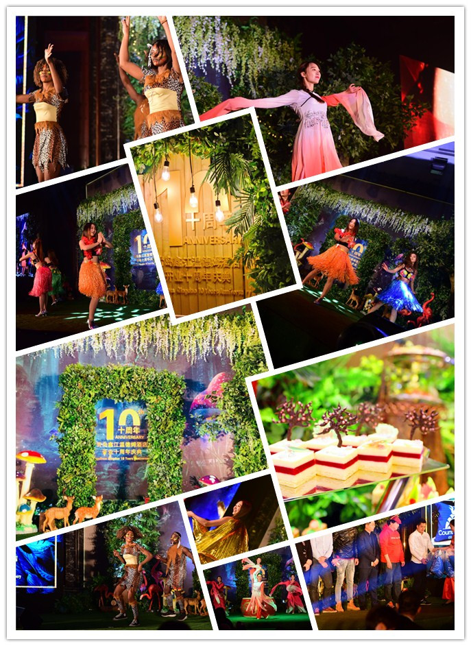 慶典活動(dòng)當(dāng)晚“叢林”主題的裝飾及茶歇給人耳目一新的視聽(tīng)感受,象征著酒店綠色健康、天然原生的美食以及熱情本真的服務(wù)團(tuán)隊(duì)。而晚宴則以“感恩、懷舊、展望”三個(gè)篇章呈現(xiàn),十年的陪伴與相守,十年的收獲與成長(zhǎng),所有情結(jié)都匯聚在精心錄制的視頻以及傾情打造的盛宴和演出當(dāng)中。