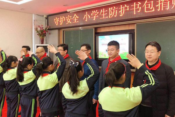 隨后,中國紅十字基金會,學生安全防護書包項目負責人,孫淺先生,向孩子們耐心的講解了安全防護書包的功能及使用方法。據悉,安全防護書包,采用全功統(tǒng)一的環(huán)保材料制作而成,環(huán)保健康;書包表面,使用360°交通反光材料進行處理,不管是在清晨、傍晚還是有霧的天氣,反光材料都能有效地反射來自孩子周圍車輛發(fā)出的光線,提醒司機,注意避讓,以保證孩子的安全;書包夾層內還進行了防溺水處理,經漂浮測試,書包可在水中承擔起一個成人的體重;同時,書包內更做了安全示警裝置,必要情況,孩子可通過使用哨子,發(fā)出求救信號,提醒周圍人注意。這些功能的設計,有效的保證了孩子上下學路上的安全。