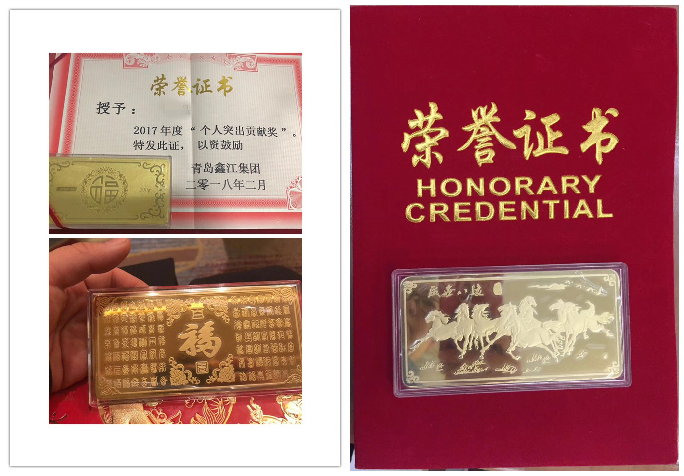 個人突出貢獻獎 獎品:200g金磚