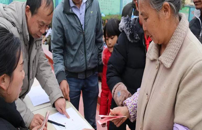貧困生家長領取青島鑫江慈善基金會貧困生助學金
