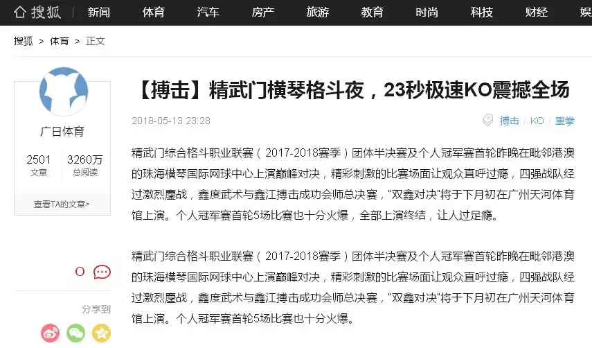 截止至5月17日,已有近80家行業(yè)主流媒體發(fā)布了鑫江搏擊挺進(jìn)總決賽的喜報(bào),發(fā)布量約240余次,轉(zhuǎn)載量高達(dá)數(shù)十萬次!向全國乃至世界,展現(xiàn)了其昂揚(yáng)斗志與所向披靡的實(shí)力!