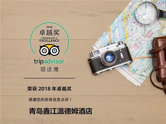 青島鑫江溫德姆酒店近日再次獲得全球最大旅游點評網——貓途鷹(TripAdvisor中文官方網站)頒發的“2018年度卓越獎”和《SPLENDEUR赫》雜志主辦的“2018年度第五屆中國區旅游勝地城市高端酒店金榜”頒發的“最佳卓越服務商務酒店”。