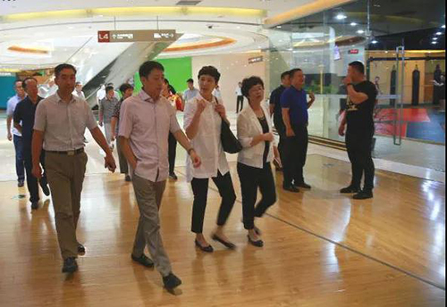 在開展調研工作過程中,鑫江集團的趙文博先生、方潤超女士和邱晶女士陪同各位領導參觀了繽紛東方真冰場、鑫江國際搏擊俱樂部、阿瑞斯健身、南冰輪滑等購物中心內發展群眾體育工作的商戶。