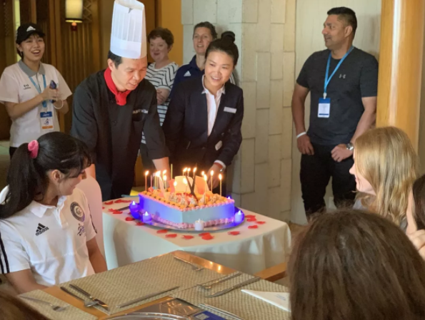 入住期間有一位小隊員過生日,酒店工作人員為她唱了生日歌,給予了美好的生日祝福,令她特別感動。球隊領(lǐng)隊特意寫了感謝信表示感謝。