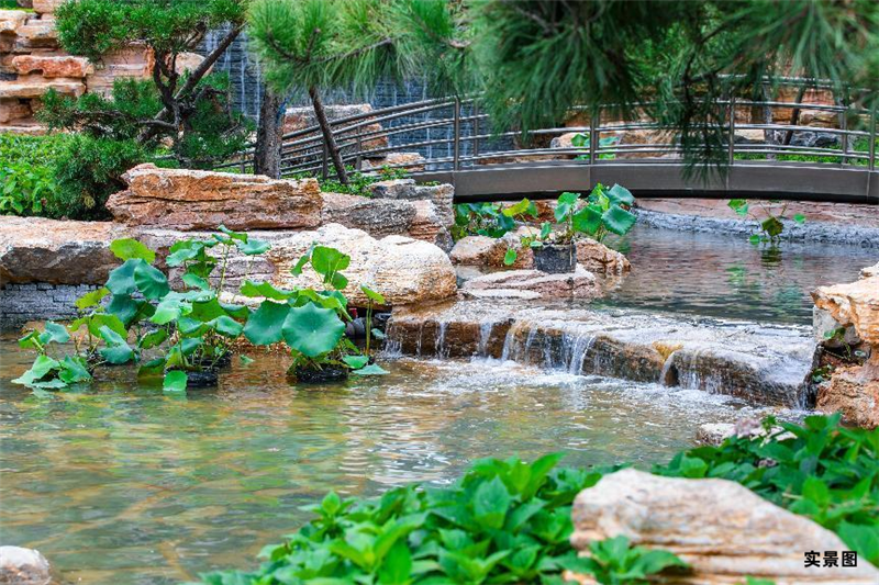 園林立意取自王維《輞川圖》,將周邊自然山水環(huán)境、地理特征融入到設(shè)計中,把華子岡、歆湖、臥虹橋、東峰秀色、白石灘等二十景鋪展開,凸顯“閑適自在”的生活意境。層層遞進間,又別有洞天,烏柏、紫薇、泰山松等多種名貴苗木經(jīng)“全國海選”并全冠移植到園林中,移步異景,滿園都是關(guān)不住的自然風(fēng)情。
