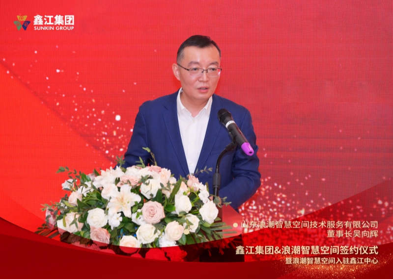 簽約儀式上,鑫江集團董事長方潤龍、浪潮智慧空間董事長吳向輝分別發表精彩致辭。王信卿代表薛家島街道黨工委對協議的簽署表示祝賀。