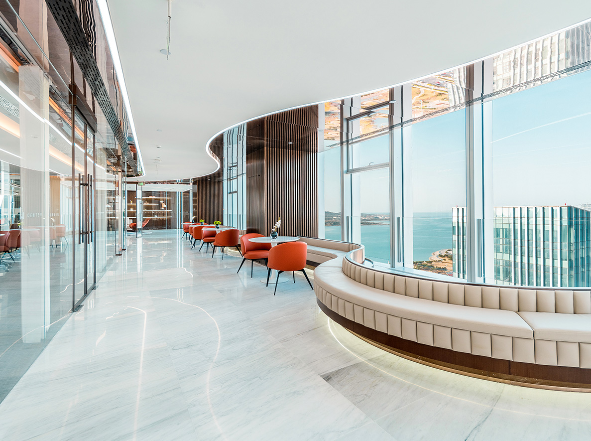 鑫江中心是鑫江集團投資的高端商務綜合體項目。項目擇址國家級經濟新區青島西海岸,據唐島灣金融科創區核芯地段,是一座集辦公、科研等功能于—體的國際超甲級寫字樓。項目總建筑面積約18萬㎡(含商業),緊鄰濱海大道及唐島灣公園,三面海一面城,優享270°一線海景資源,樓體采用鋼骨混凝土框架核心筒結構,U型雙子塔造型,獨創海浪式大堂入口,建面約2500㎡共享大堂,樓間約58.8m無柱大跨度、18.8m挑空空間設計,筑就青島市巔峰商務新封面;項目引入全球前言科技,打造全新智慧樓宇系統,采用新型VAV中央空調系統,運行體量約8萬㎡,是目前青島在建單體運行體量最大的商務項目,更加節能高效環保。
